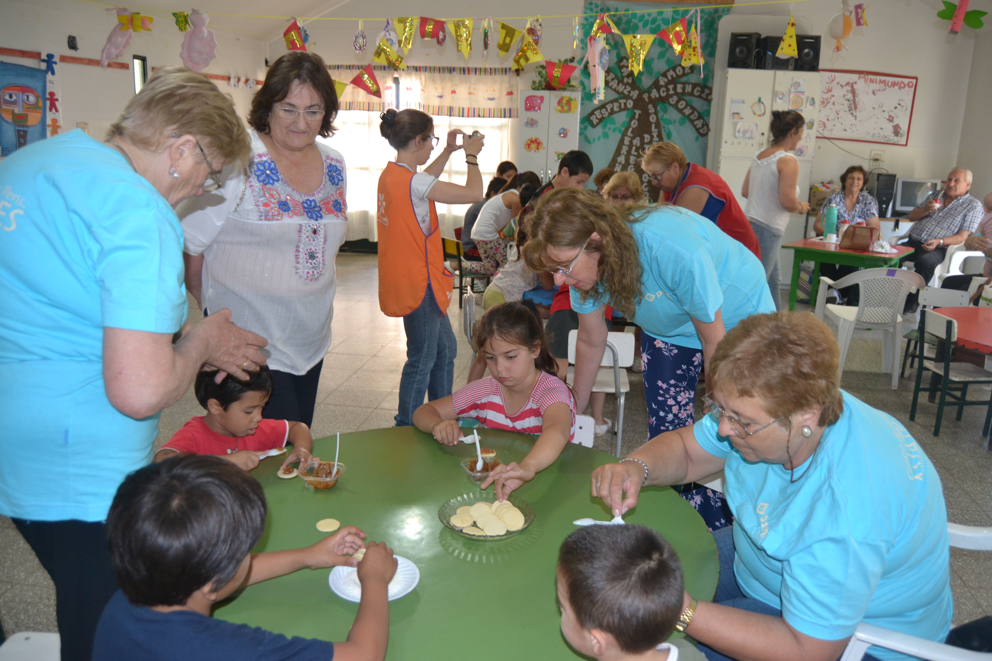 Se trata de una jornada recreativa entre niños y adultos mayores dentro del proyecto “Por la sonrisa de un niño”. De dicha actividad participaron talleristas de Manualidades y Yoga.